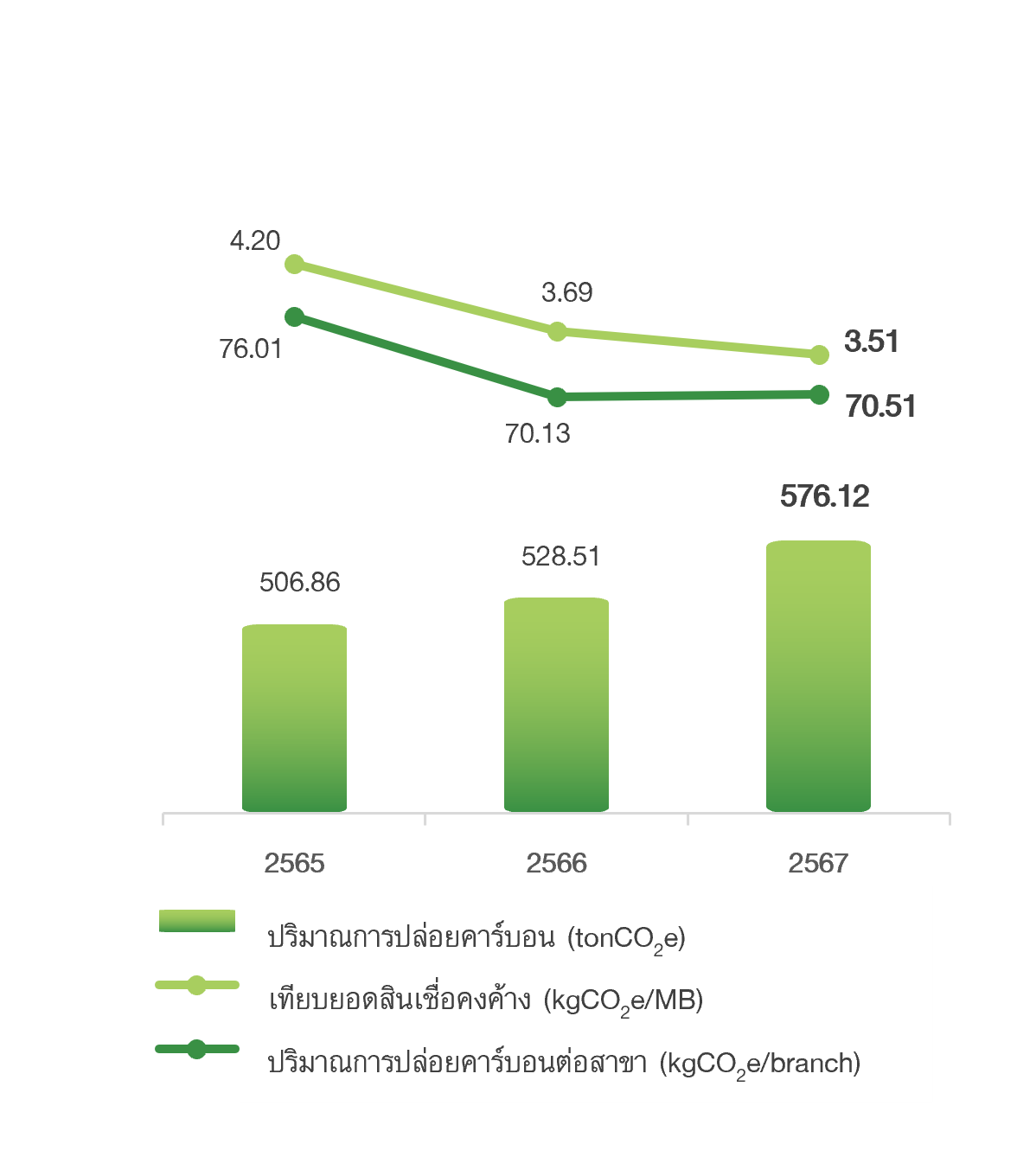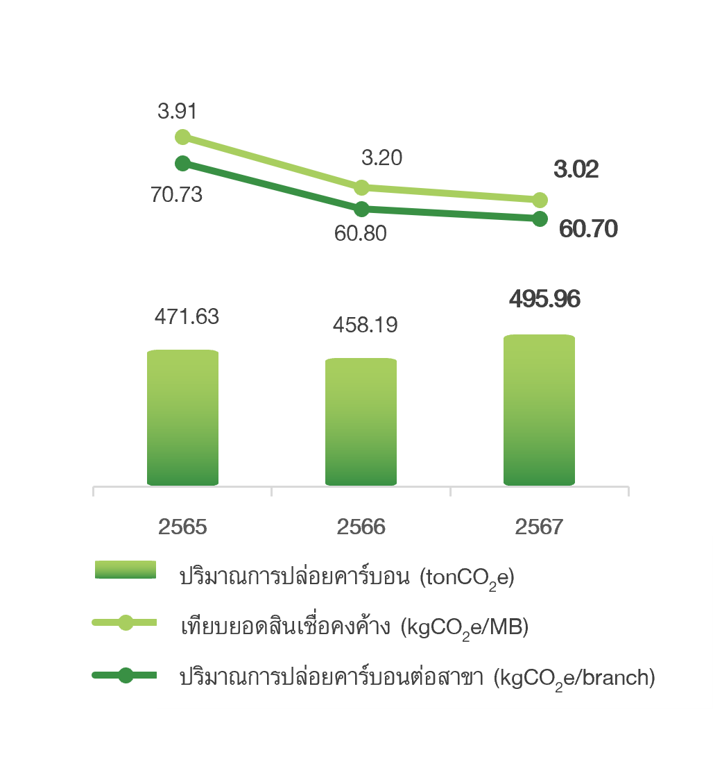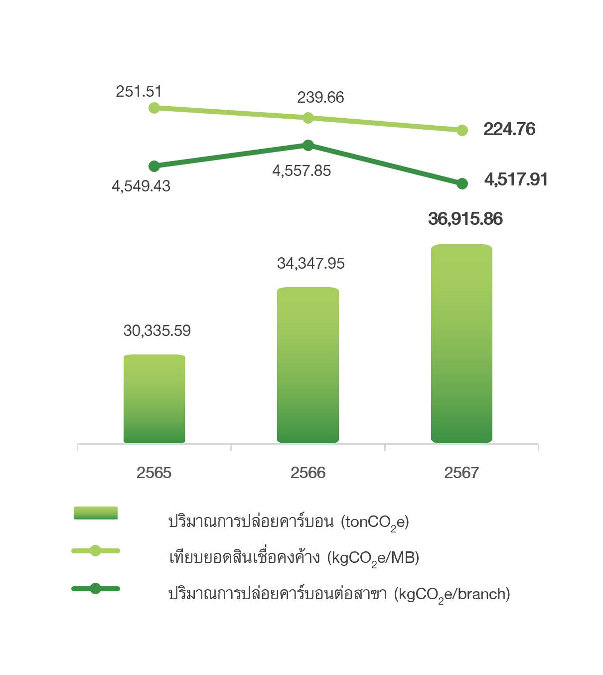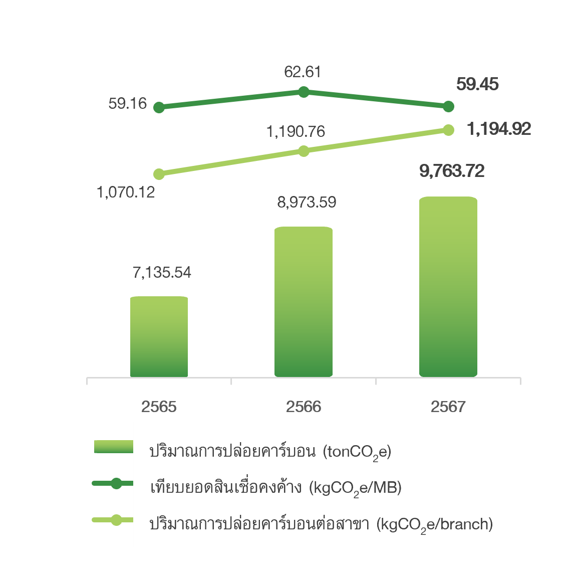 การเติบโตของธุรกิจผ่านการขยายสาขาและฐานลูกค้าเพิ่มขึ้น ส่งผลให้ปริมาณการใช้ทรัพยากรและการปล่อยก๊าซเรือนกระจกสูงขึ้น แต่เมื่อเปรียบเทียบกับยอดสินเชื่อคงค้าง การปล่อยก๊าซเรือนกระจกมีแนวโน้มลดลง ซึ่งสะท้อนให้เห็นว่าบริษัทฯ สามารถควบคุมการใช้ทรัพยากรได้ดี แม้จะเติบโตมากกว่า 20% ก็ตาม บริษัทฯ ยังคงมุ่งมั่นที่จะเพิ่มประสิทธิภาพในการจัดการทรัพยากร และนำเทคโนโลยีใหม่ ๆ มาใช้ในการดำเนินงาน พร้อมพัฒนากรอบการรายงานด้านสิ่งแวดล้อมให้ทันสมัย เพื่อลดผลกระทบต่อสิ่งแวดล้อมในระยะยาว